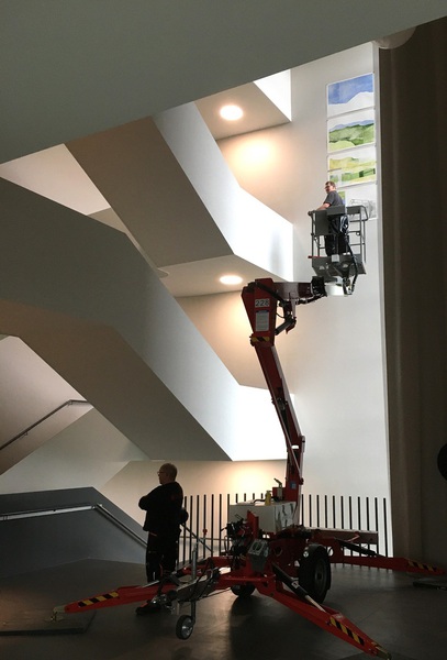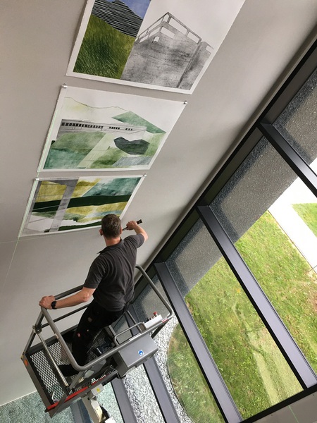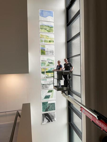 Eigens für das Foyer dieses einzigartigen Gebäudes von a+r Architekten entstand eine raumgreifende Wandinstallation.